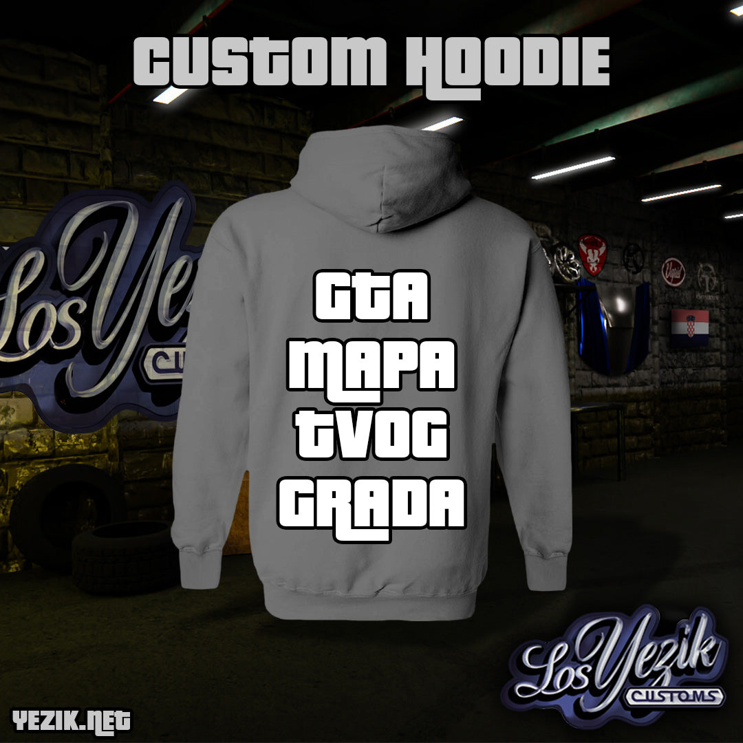 Vaša jedinstvena personalizirana hoodie s dizajnom vašeg mjesta u već poznatom GTA stilu.